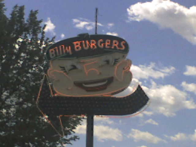 The cell camera version will have to do. This is in Wilber, Washigton. Wilber is a very small town that we used to drive to at night time on the way to Idaho to visit family when I was in school. This sign creeped me out, especially at night when the town was completely dark with the exception of Billy’s haunting face lit up in the distance.