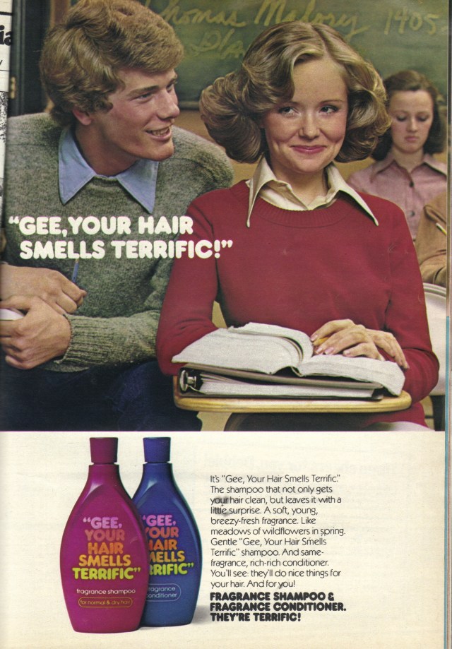 I LOVE to look at old Seventeen Magazines! Omg…it’s like wtf were we thinking back then?!?! Engaged in highschool? Frikkin dressing like our moms? My mom totally had those pre washed jeans! I saw her wearing them in a photo circa 75-76 during her wedding shower I think. She also totally had that Gee your hair smells terrific. I could’ve sworn there was a modern version of it.