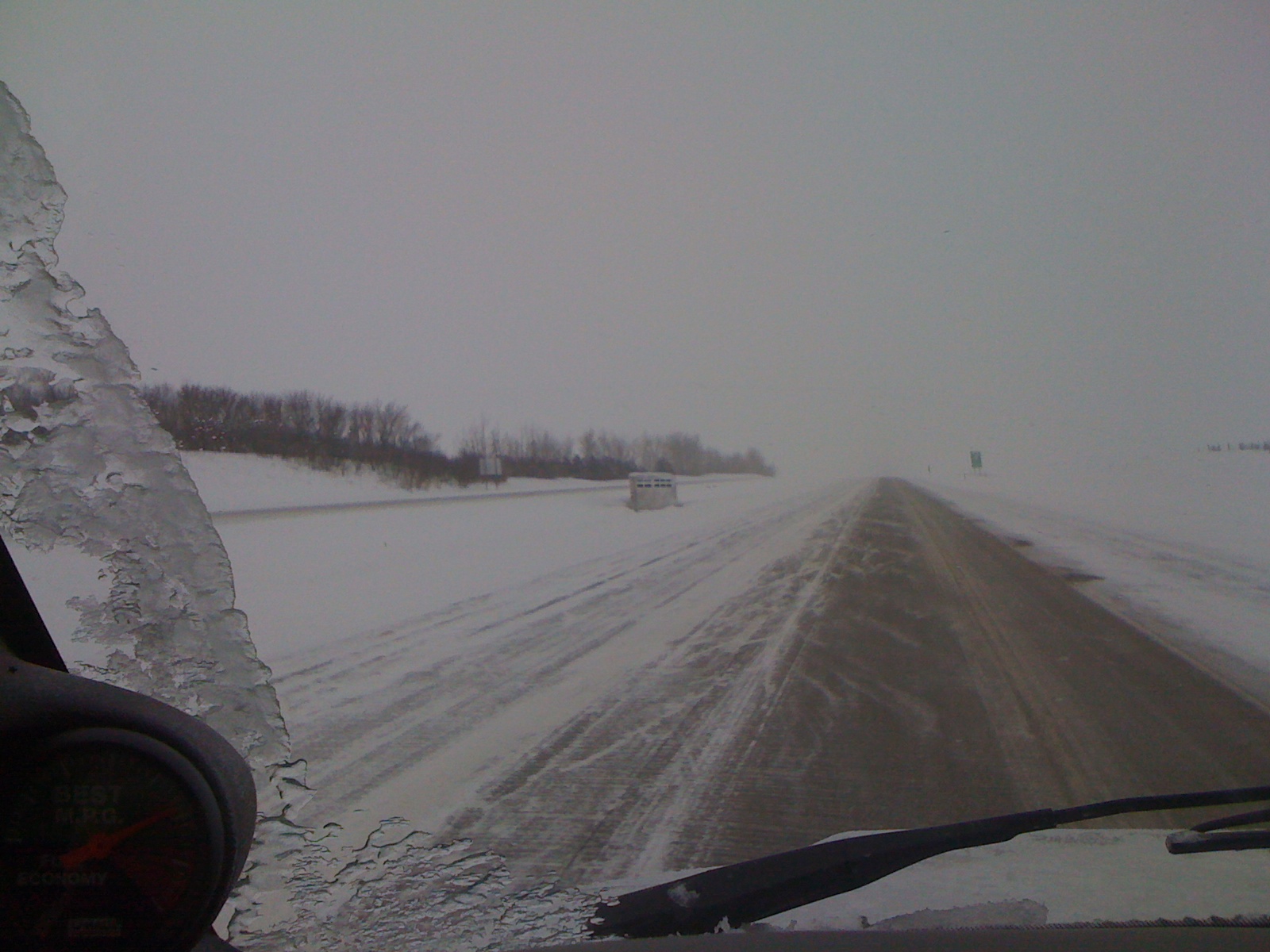 Forty miles and an hour or so later and the exit to this supposed town was too snowed in to enter. The town after that was another thirty or forty miles so we trudged on.