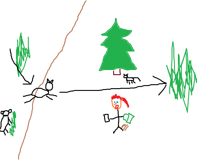 I was standing under the tree for roughly fifteen minutes, chatting away when something happened that could only be properly retold with the help of the highly sophisticated computer program, MS Paint.