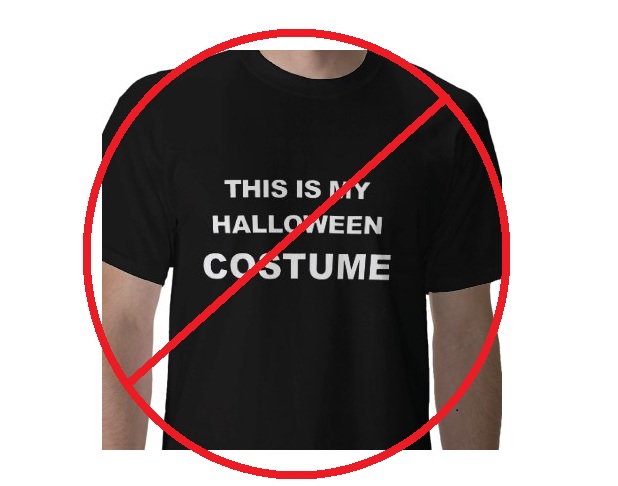 Whoopie!   It’s fall!  It officially time to smell leaves, pumpkins, and the inside of rubber masks!  Today, we will discuss Halloween costumes that don’t suck.  I always prefer when a costume is homemade.  The bagged up varieties from Target or a costume superstore are fine, but the best and most creative get-ups are always those that people have carefully assembled on their own.  There are some types of costumes I just hate, most notably the “I am too cool to dress up t-shirt worn by men: