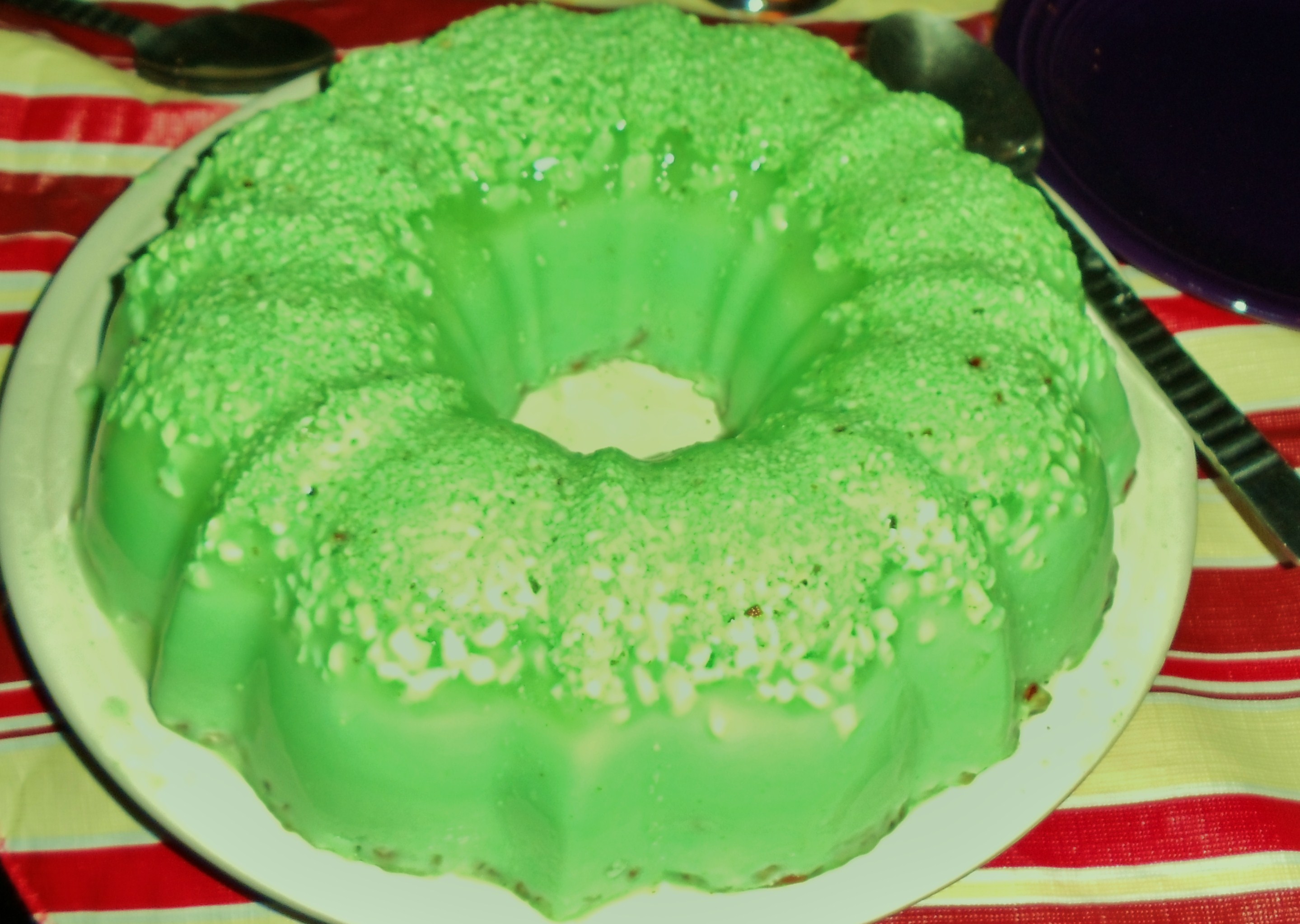 Growing up in Minnesota, green Jello is a major food group.  This is especially true if your family attends church potlucks in the basement of your local worship building.  My grandma’s Green Jello Mold Salad was the best, I tried to duplicate it, and failed.  But it was still green Jello mixed with the unimaginable.