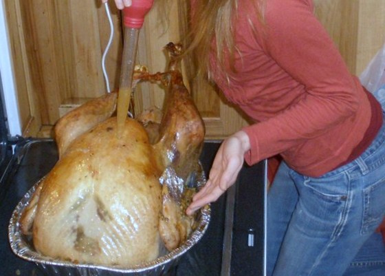 Last spring I stopped by the feed store and bought three teeny turkeys.  Over the summer and fall they got fat, feathered and ornery.  While, of course, they were well taken care of, they were also looked at as food.  I often have people asking if it’s hard to eat animals you raise and so far the answer is not at all.  It is satisfying to be able to know where your food came from and what the animals ate before you eat them. The turkey we chose last Thursday morning was a whopper.  After he was gutted and plucked he was still over 30 pounds.  If we had followed traditional cooking times the bird would have been done  last night.  Instead we cranked the oven and rubbed a lot of butter on his breast to keep him from drying out.  It worked too, best turkey I ever ate.