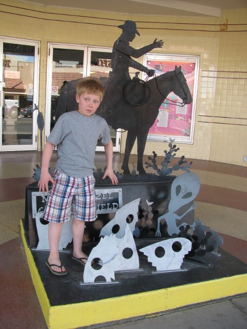 Upon entering the museum there stands an art piece representing the initial crash at Roswell in 1947.  Cowboys and aliens and joining them, The Max.