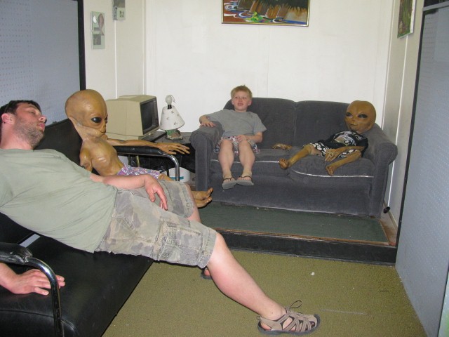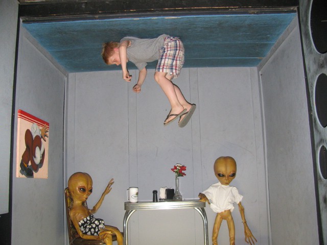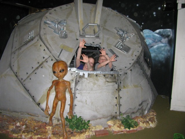 Onto Alien Zone!  For two bucks a person we were able to see what the day in the life of an earth bound alien is really like.  The attraction encourages one to take an up close look into their lives.