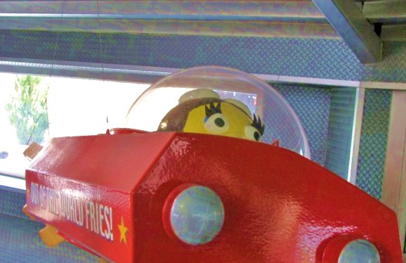 After the education at the museum and the fun at Alien Zone we were starving.  I got a tip from a Pilver reader to make sure and stop by McDonald’s on our visit.  I was anxious for a Ronald with green skin or a Grimace with antennae.  While Roswell’s McDonald’s was a welcome change from your everyday fast food establishment the theme was not that of the extraterrestrial variety, but instead a space travel affair.