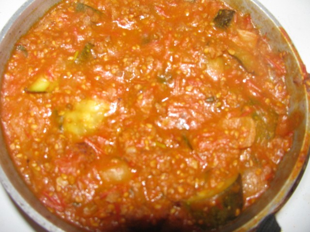 I then added everything else, as well as a little salt, pepper, and hamburger.
