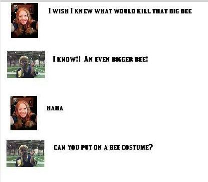 MySpace blogs required you to add pictures with html code, which meant you had to have a photo account on a site like photobucket.com.  I was digging through my old pictures on my photobucket page yesterday and found some of the conversations I had made into blogs on MySpace years ago.  Being as my MySpace blog is gone forever, I figured I was not cheating to use them as a post on this blog.