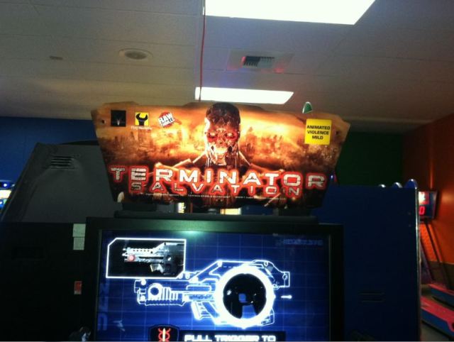 I was pumping quarters into the skee-ball machine, hogging it from all the little kids with big patient eyes when Mr Pilver came up to me and told me he had to show me something. There was a Terminator Game:
