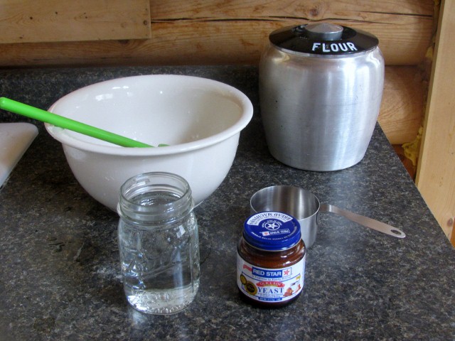 Today, my only goal beyond cleaning up the leftovers from last night’s dinner and beer bottling session is to begin my first sourdough starter.  I’ve been aspiring to prepare one for awhile, lord knows I go through yeast enough to warrant the activity.  So, come along with me and I mash together some flour, water and yeast.  This will surely be the highlight of your day.