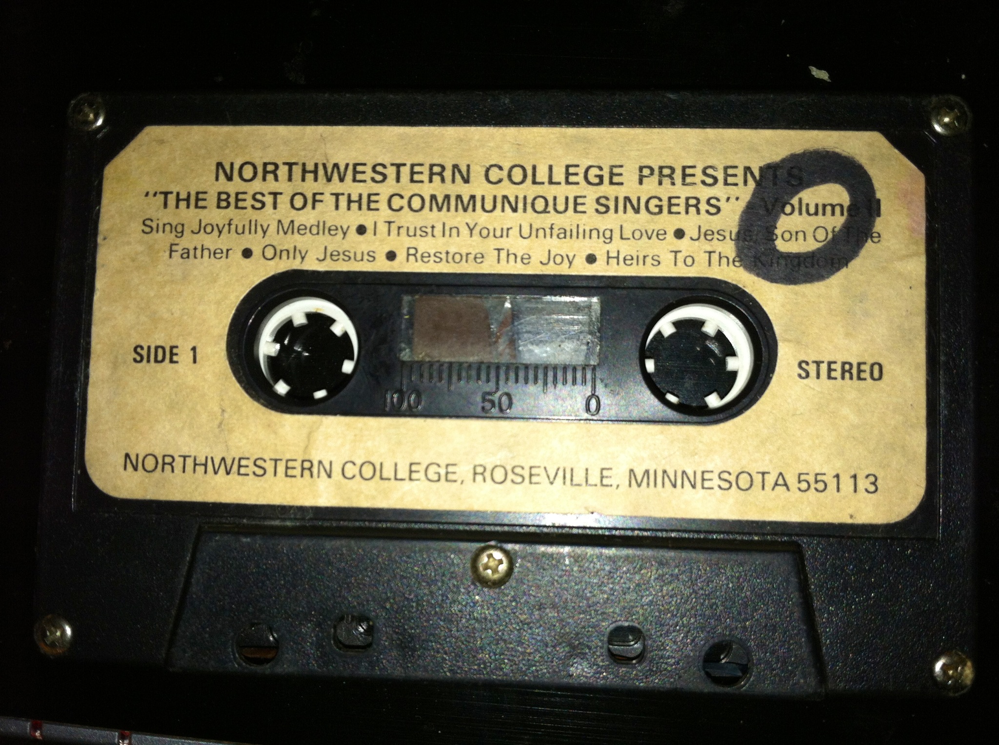 Here it is. Notice the zero in the corner? I numbered all my mixed tapes. I had all the songs on them listed in a notebook so I could find whatever song I needed to listen to at any moment. Not exactly itunes, but I was satisfied with it at the time. I must have been around eleven or twelve when my mother gave me this cassette full of hymns to listen to on my brand new tape player/radio. I was very bored with the tape, likely before I ever made it through one side. The radio, however, was amazing. This was the first radio I had for my very own self to listen to whatever station I wanted to in my bedroom. The rules in our house were that we could only listen to the oldies (which is why I still know all of them by heart), or the Christian college station where this tape was made.